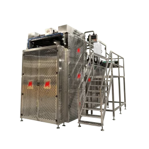Máquinas diseñadas para introducir y extraer los envases ya cerrados dentro de las cestas utilizadas habitualmente en las autoclaves del tipo horizontal. Pueden ser automáticos o semiautomáticos, según las necesidades que demande cada línea de envasado.